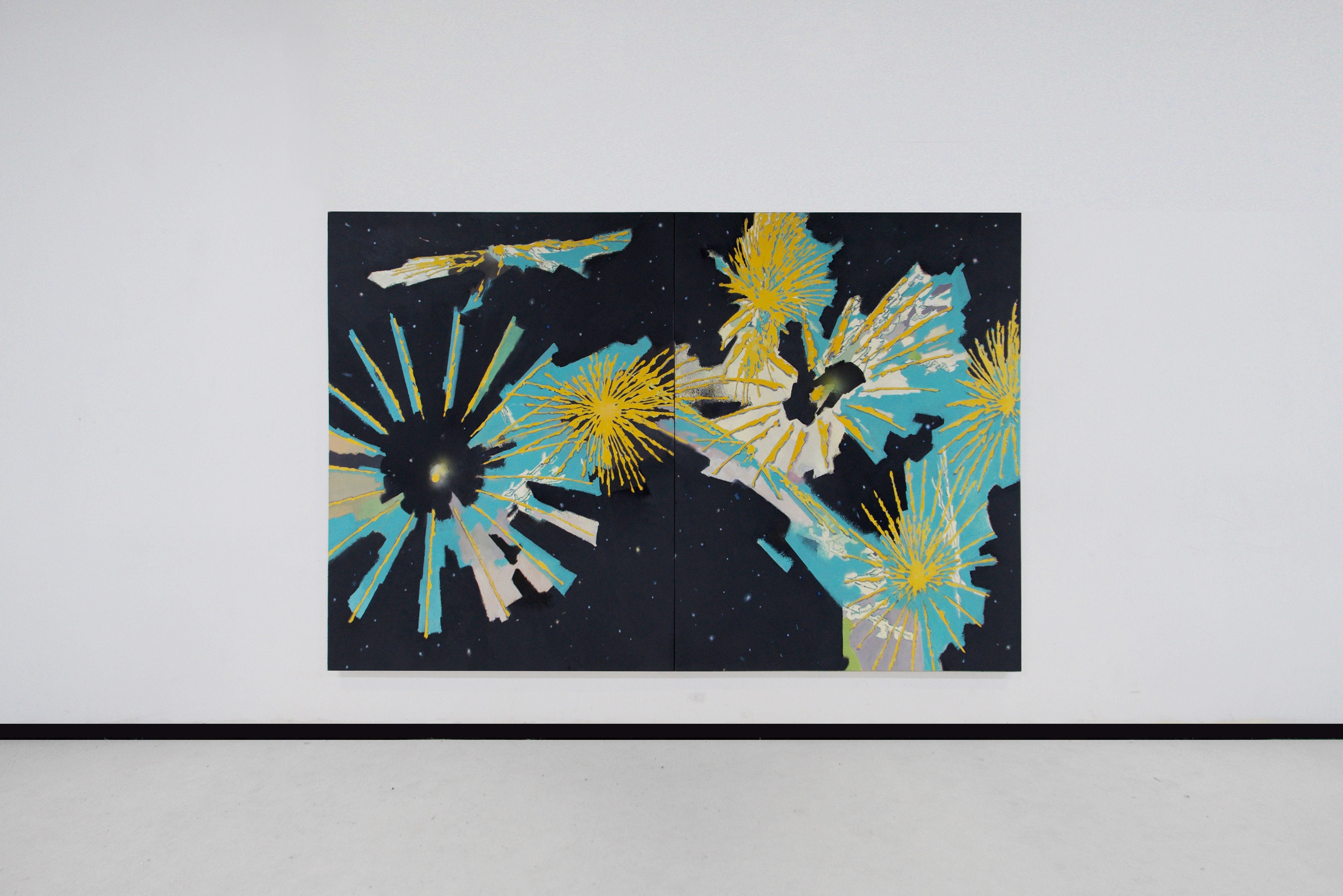 In the " Cloud Atlas" series, he depicts the flow of energy in the form of clouds, attempting to reconstruct a visual order of fluid through the interweaving of color and structure; In the "Snow Crystal" series, the hexagonal snowflake shape became the medium for him to explore the relationship between order and chance, science and mystery - those complex geometric images, both like natural crystals and like visual echoes of cosmic microwaves; In the latest "Celebration" series, these image experiences have been further refined and elevated. Artists transform the decay and explosion of stars into symbolic rituals of light - a silent celebration that releases energy in silence, responding to the passing and rebirth of life.