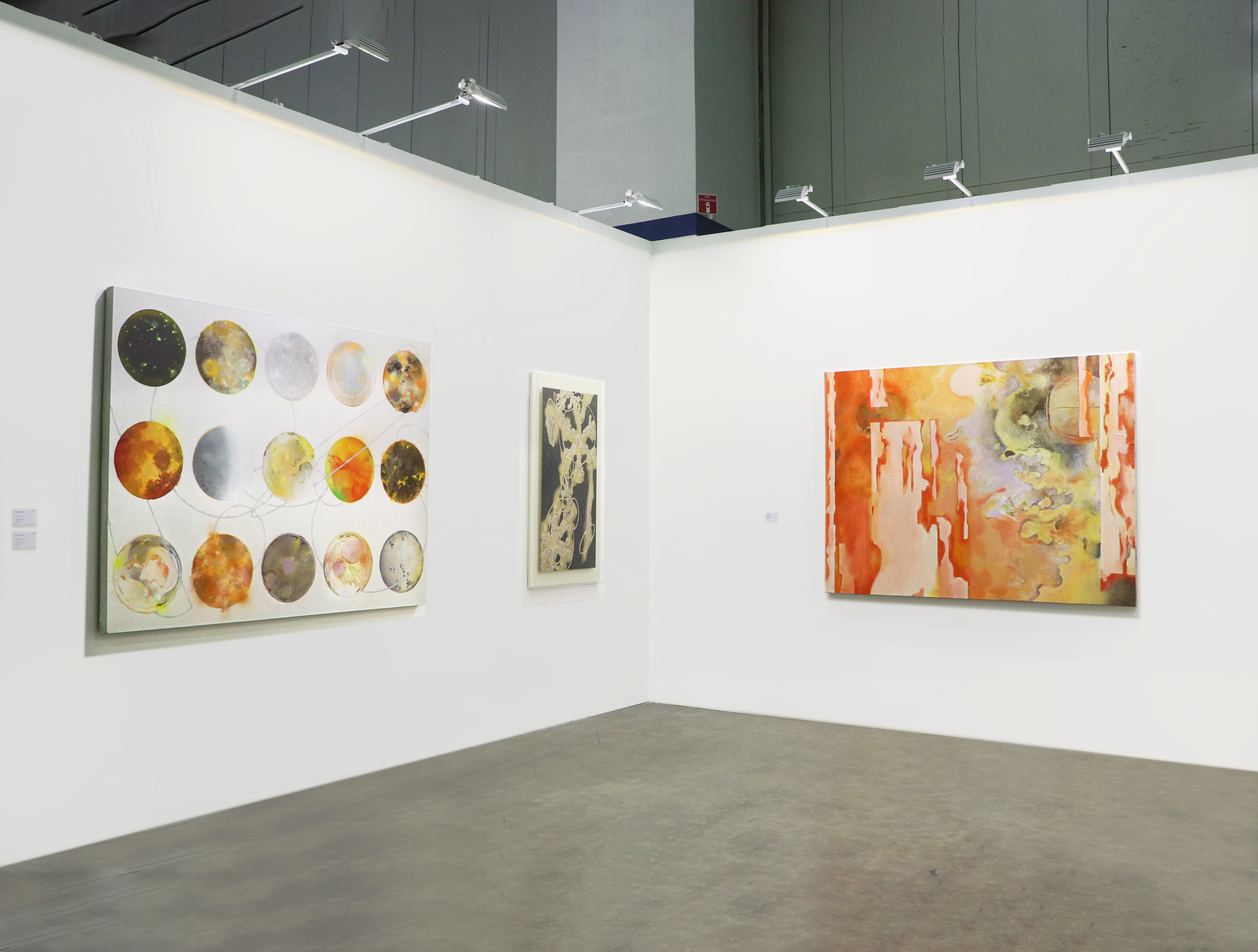 "Dome Echoes" presents Jin Han's latest series, specially created for ART SG, featuring oil paintings and woodcuts centered around the core concept of "Ether." This concept originates from Aristotle's classical "Five Element Theory," where "Ether" is regarded as the fifth element alongside water, fire, air, and earth.